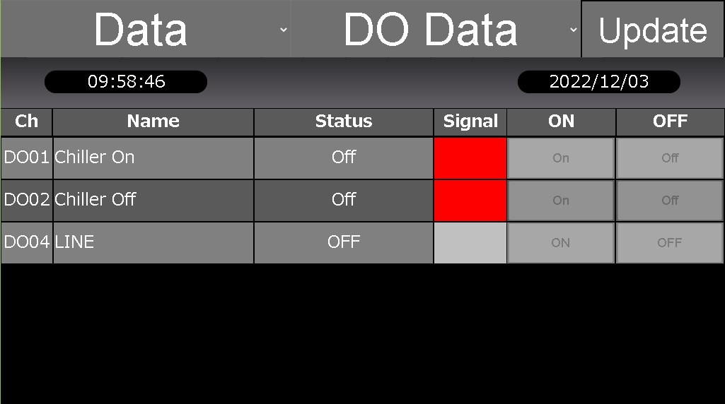 | 接点出力(DO) | チラーの停止操作:Off ⇔ On |